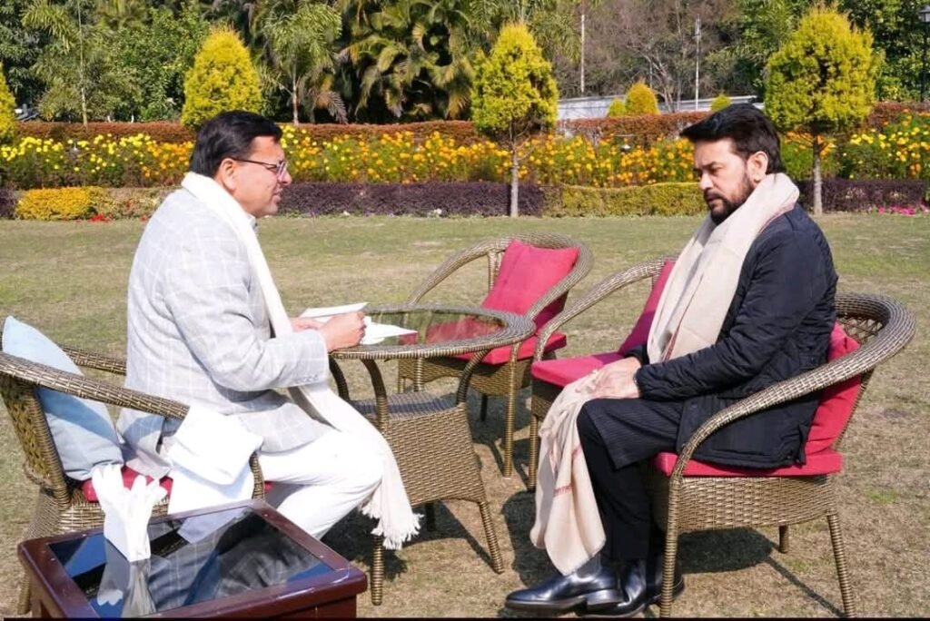 सांसद एवं पूर्व केंद्रीय मंत्री अनुराग सिंह ठाकुर ने मुख्यमंत्री धामी से की शिष्टाचार भेंट